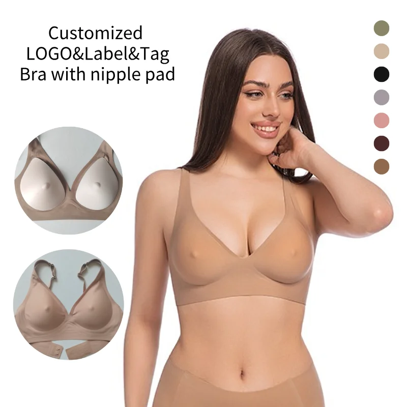 Customized logo Sexy Fashion Style Seamless Nipple Bra Adjustable Thin Straps Soft Removable Padded Women Bra with Nipple Pad