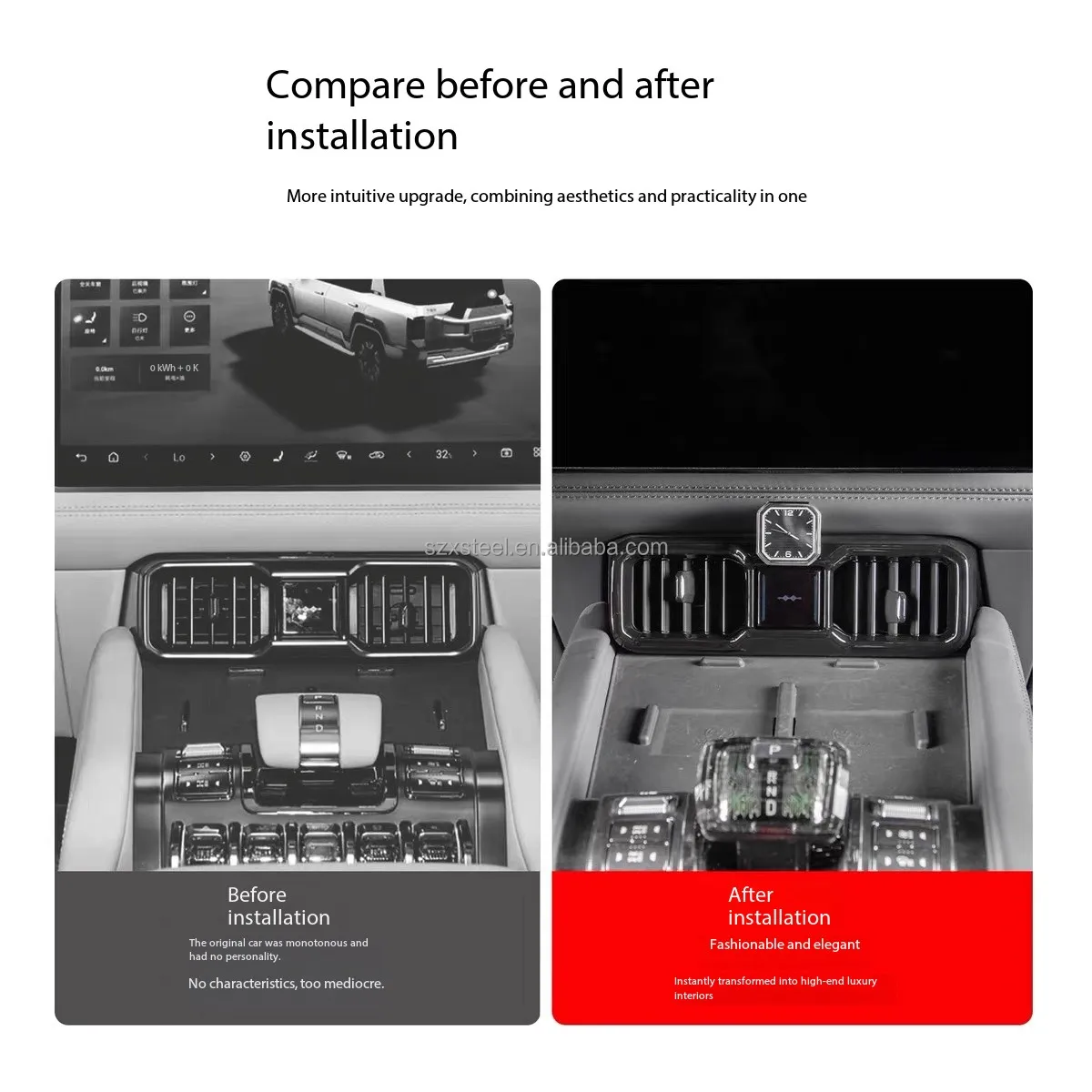 For Equabao 8 Central Control air Outlet Quartz Watch with Night Light Full Package ABS Interior High-end Modification for Car