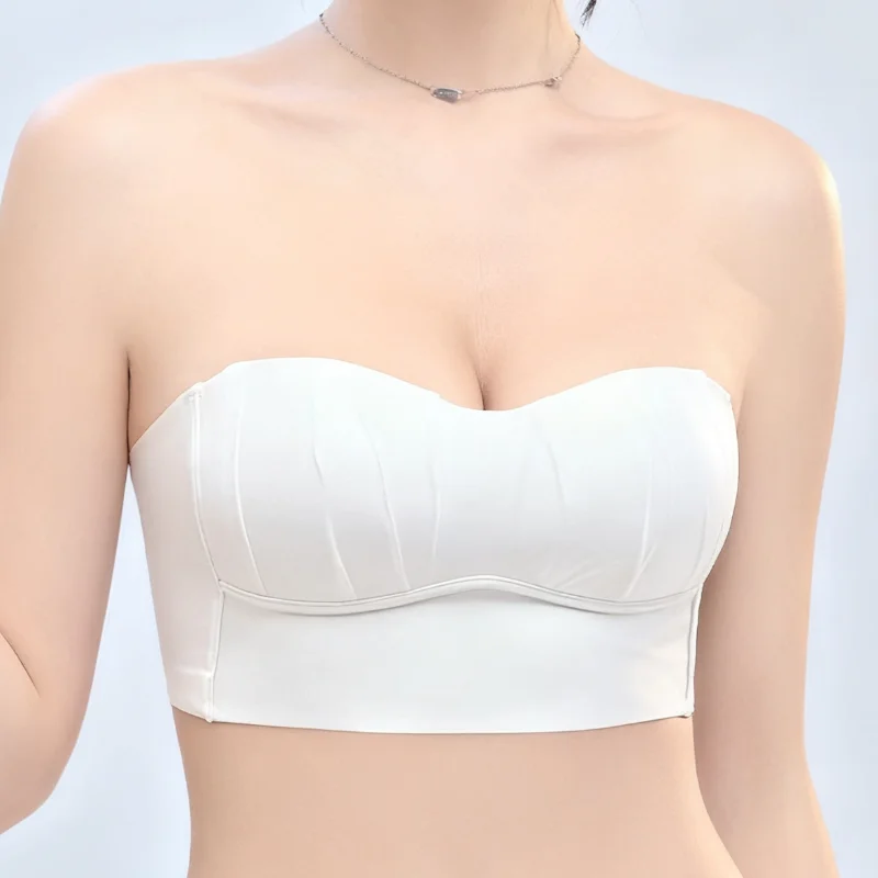 Wide Underband Seamless Wireless Supportive Ladies Bra Tank Top Adhesive Strapless Bra with Logo on Cup Strapless Bra