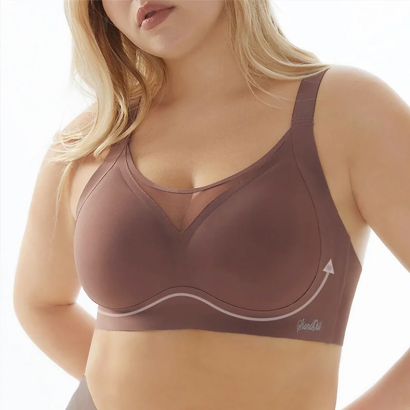 High Quality Seamless One Piece Push Soft Bra for Ladies Wireless Plus Size Supportive Anti-Sagging Daily Use Lace Mesh Bra
