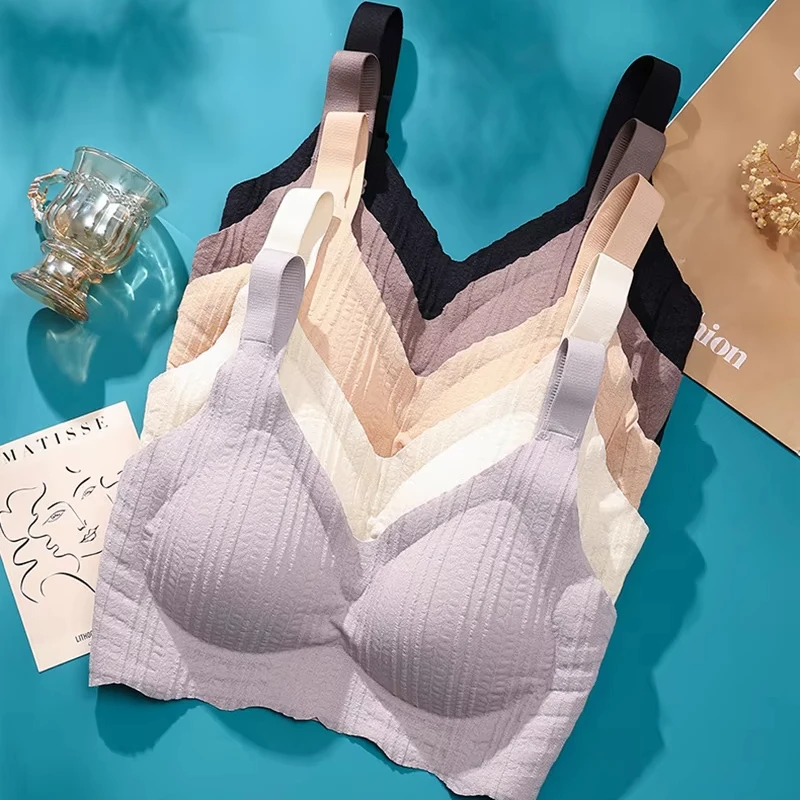 High Quality Wireless Bra for Women Custom Full Coverage Ladies V Neck Support Push up Seamless Comfortable Tank Bra