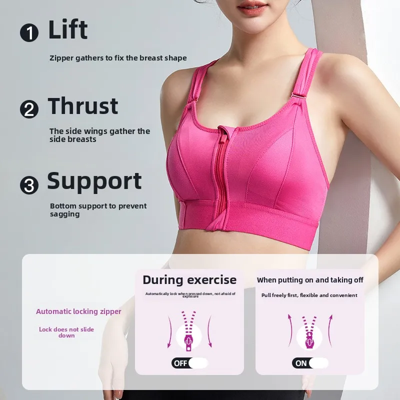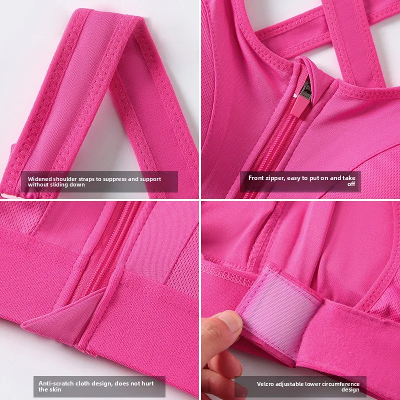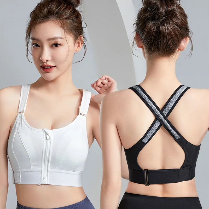 Beautiful Cross Back Adjustable Gym Sportswear High-Intensity Wire-Free Sports Bra Front Zipper Shock-Absorbent Yoga Plus Size