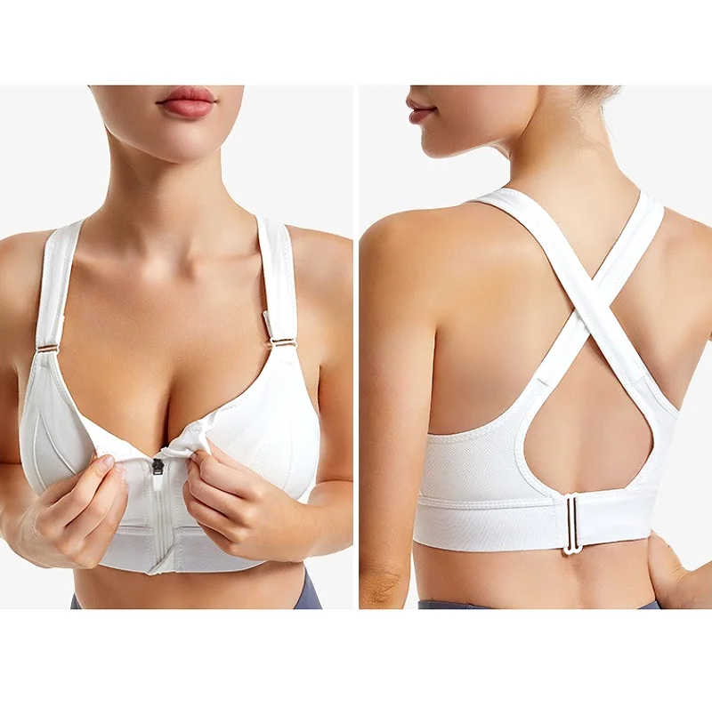 Breathable High Support Womens Deep v Neck Cross Sip Zipper Front Open Back Push up Sports Bra High Quality Running Bra