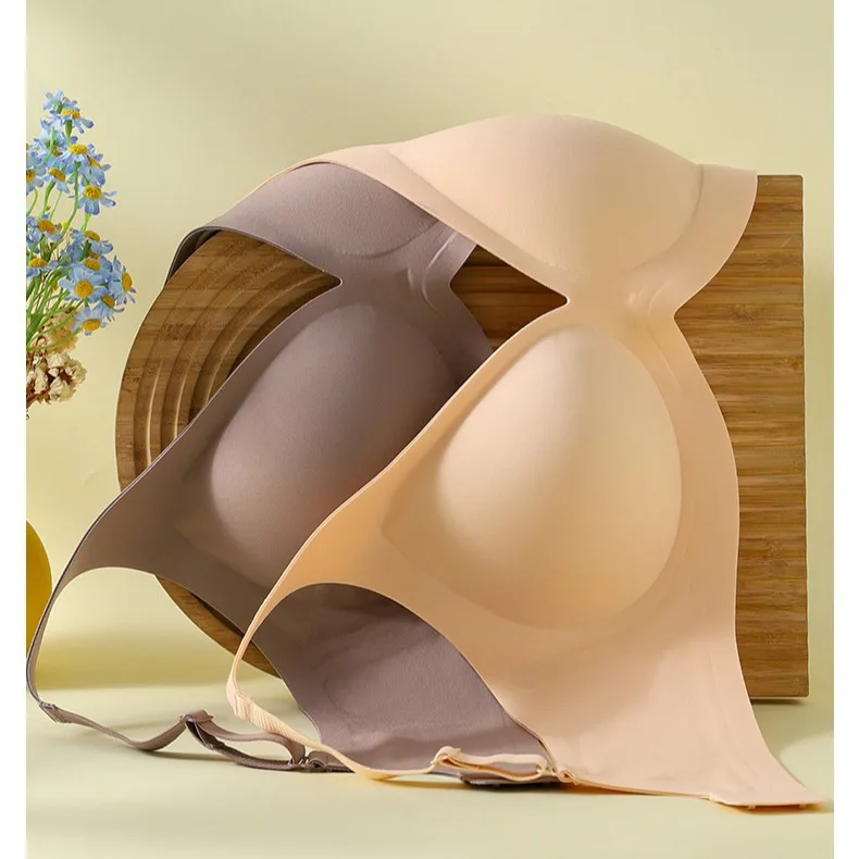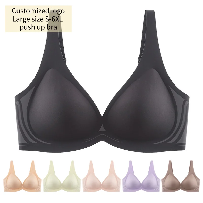 Customized logo V Neck Design Wireless Push up Supportive Plus Size Bralette Padded Bra Push up Women Jelly Anti Sagging Bras