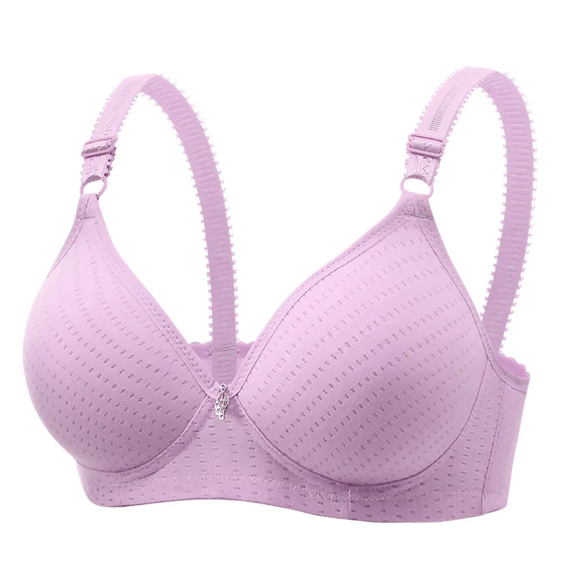Wholesale Price Polyester Sexy v Neck Push up Gathering Soft Underwire Thin Breathable Bra for Middle-aged Elderly Women
