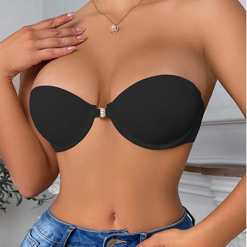 EU US Size Sexy Strapless Half Cup Bra for Women Small Breast Push-Up Front Button Wedding Dress Breathable Summer Soutien Bra