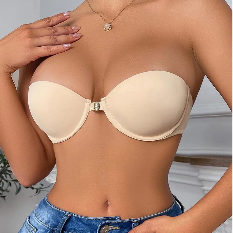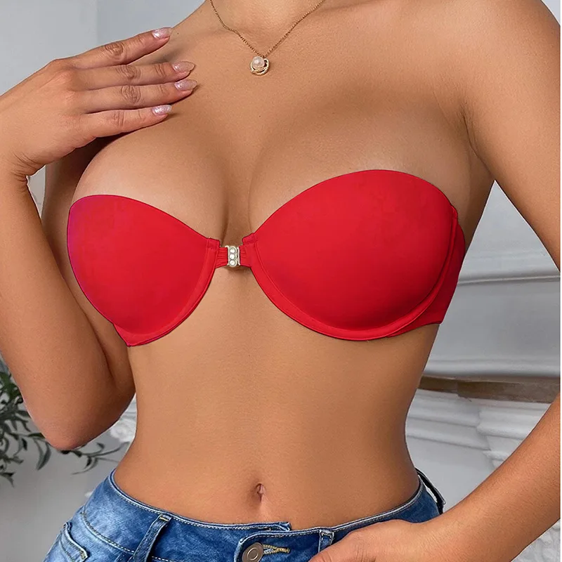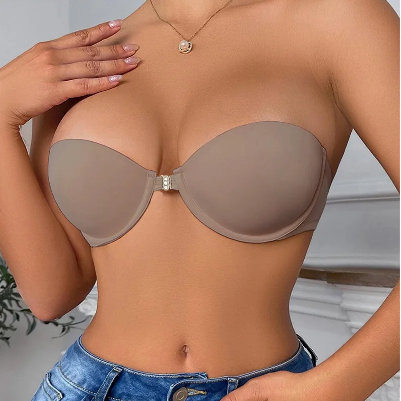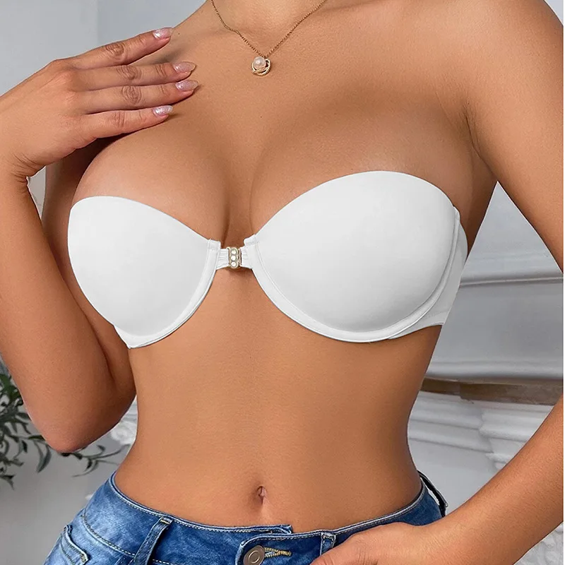 Women's Anti-Slipping Sexy Strapless Backless Dress Soft Support Breathable Summer Bra with Front Buckles Open Big Boobs Bra