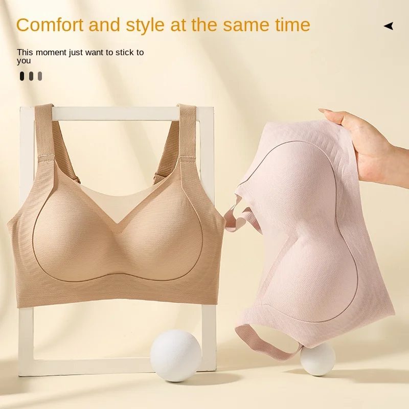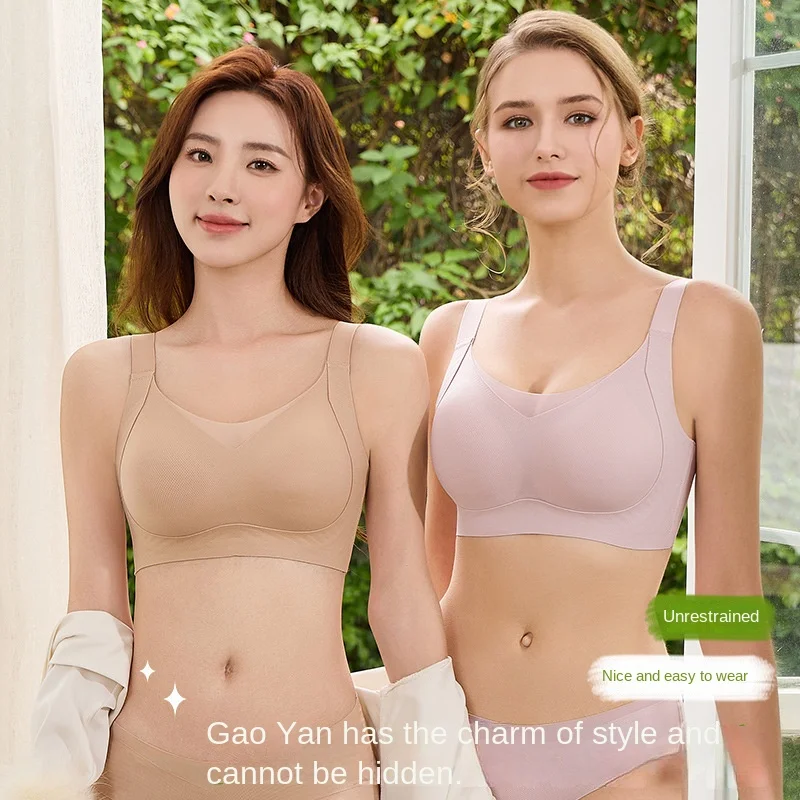 Wire Free Full Cup Large Size Sports Bra Thin Gathering Fixed Cup Large Chest Small Seamless Wide Straps Plus Size Bralette