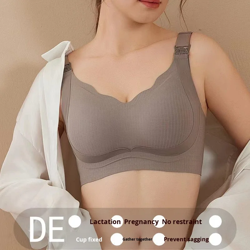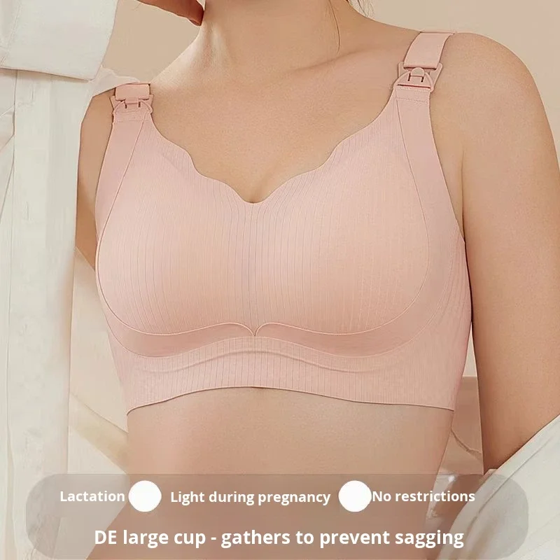 Lingerie Manufacturer Nursing Bra Everyday Large Cup Maternity Summer Thin Fixed Cup Wireless Push-Up Breastfeeding Bra Size 46