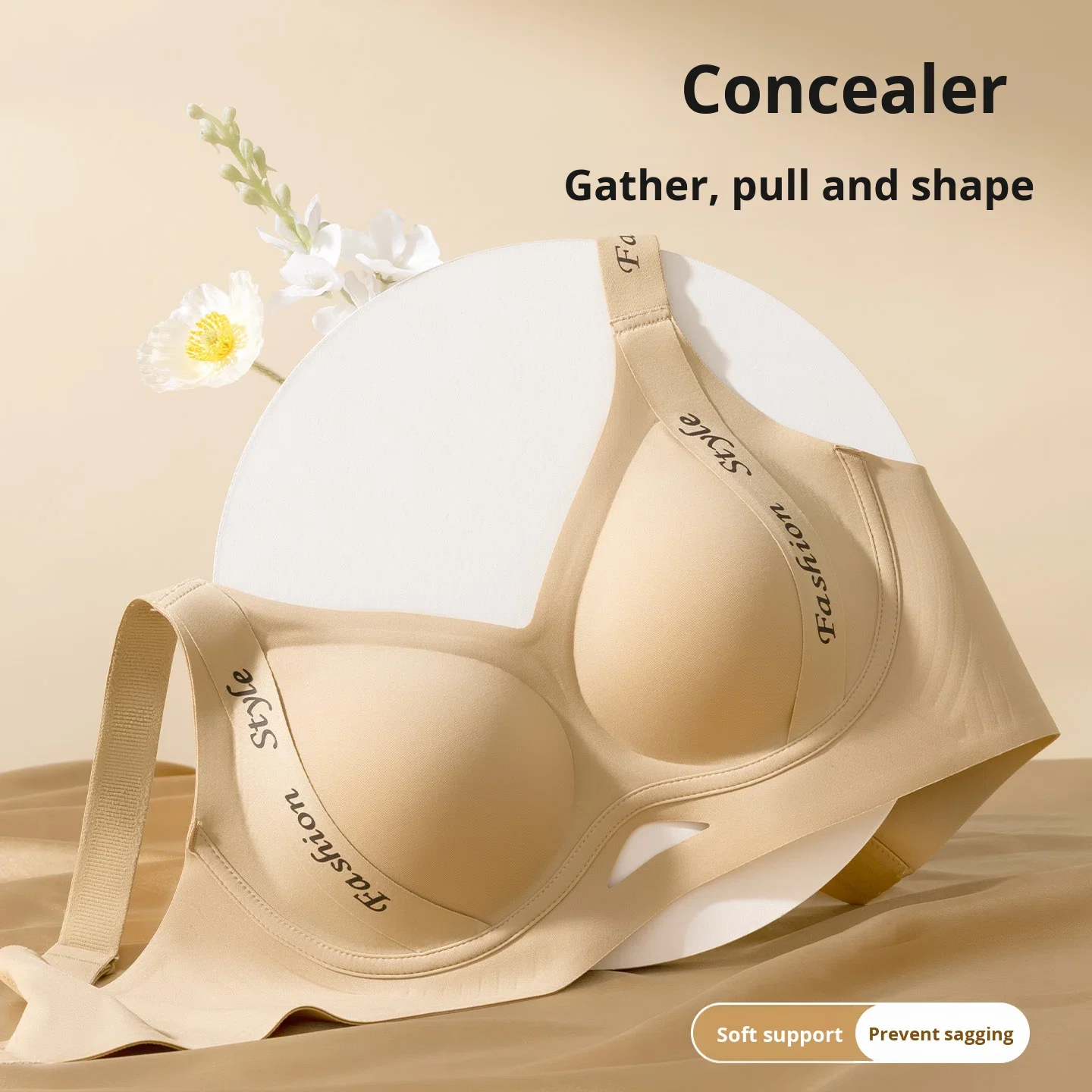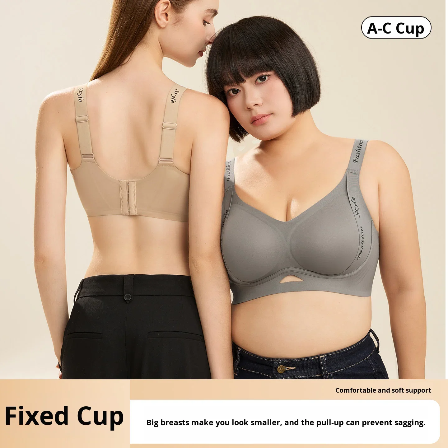 Letter-Shaped Thin Seamless Bra Women Large Busts Minimizing Effect Gathering Side Breasts Anti-Sagging Comfortable Brassiere