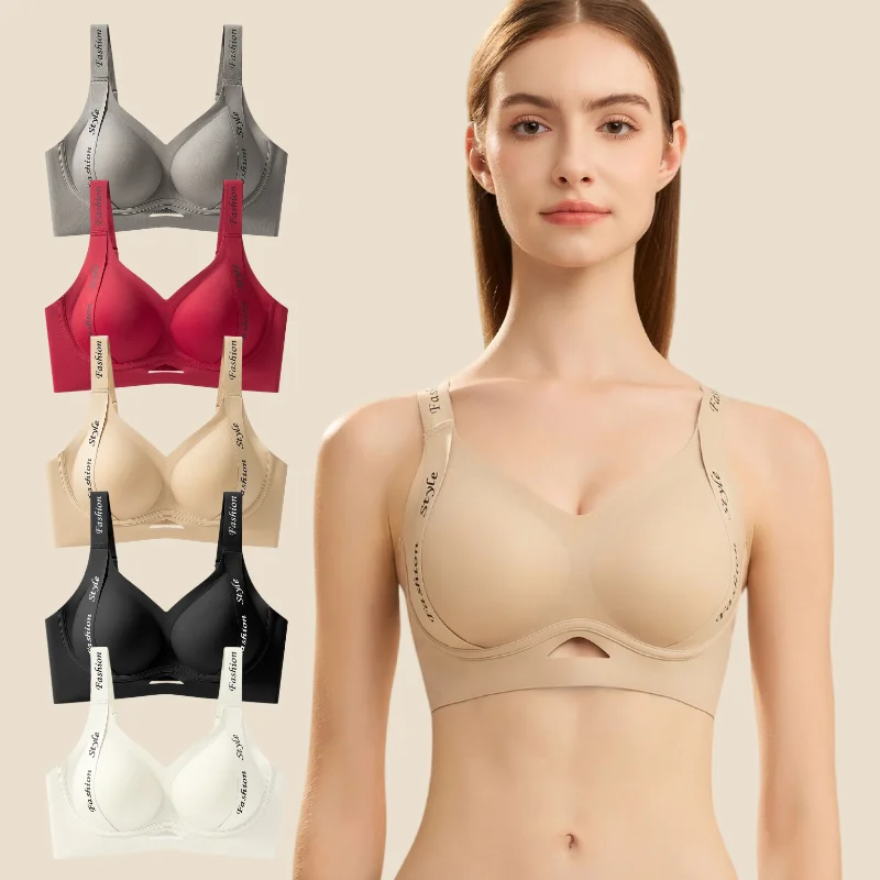New Trend Wireless Bra for Women Custom Full Cup Ladies V Neck Support Push up Bralettes Seamless Padded Scalloped Tank Bras