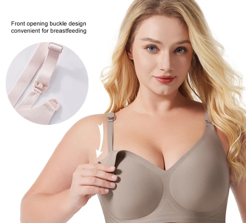 Full Cup Seamless Soft Comfortable Breathable Anti-sagging Push-up Nursing Bra for Women Big Busts for Maternity Knitted