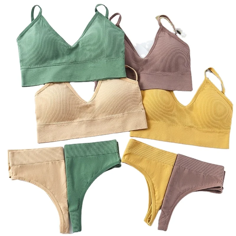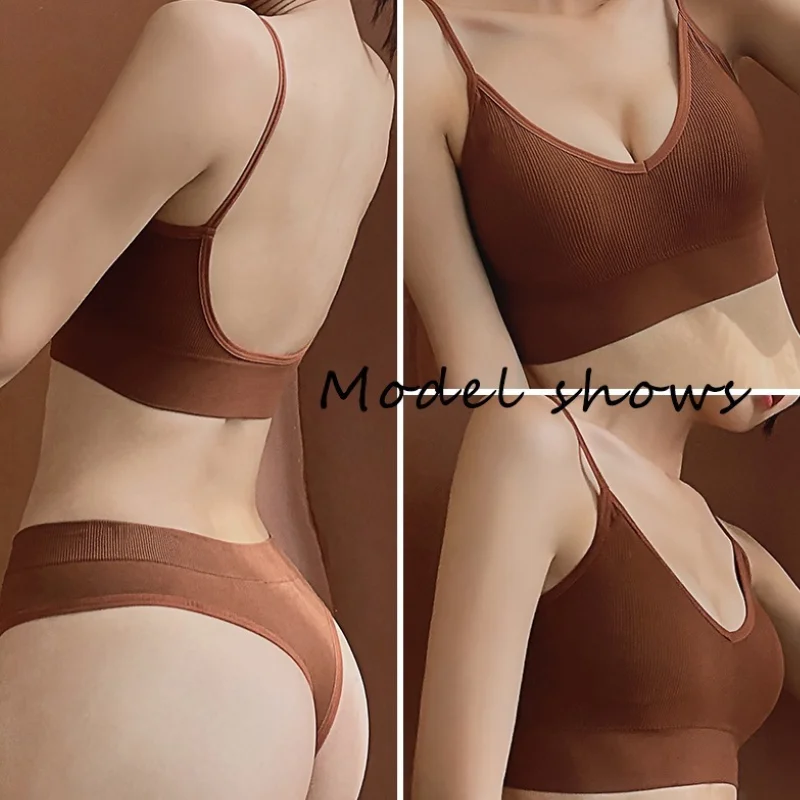 Women's French-Style Seamless Gym Bra Set Push-up Sports Bra with Bikini Thong Wholesale Yoga Set for Everyday Use