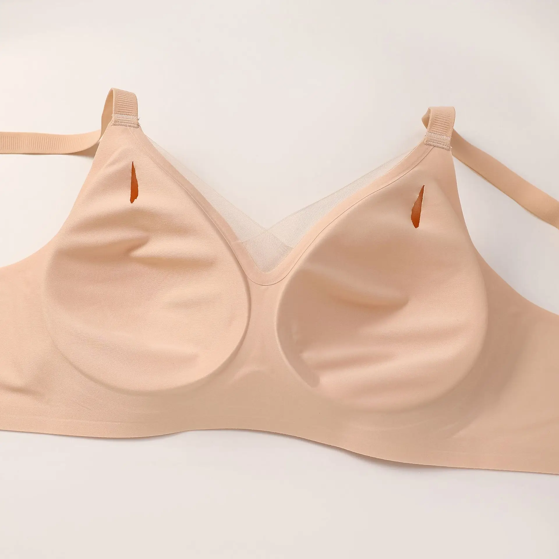 Large Size Bra Deep V Mesh Seamless Soft Support Push-Up One-Piece Solid Plus Size Anti-Sagging Large Bust Jelly Bra for Women