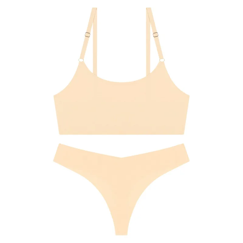 Customized logo Women's Everyday Comfort Ultra-Thin Seamless Bra & Thong Set Wire-Free & Without Underwire Bra Sexy Thong Set