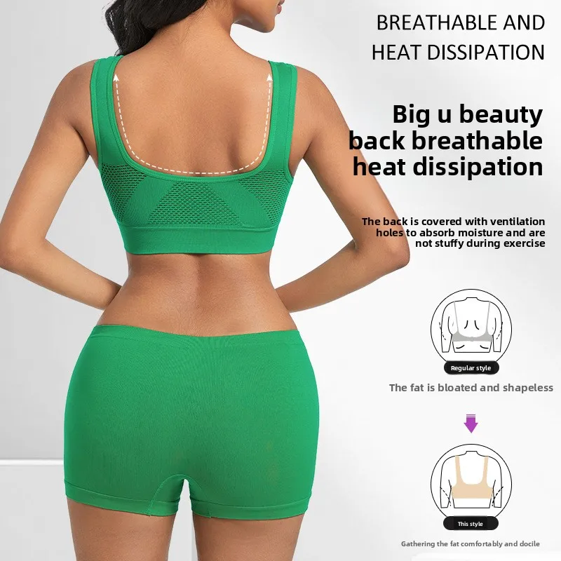 Women's Sports Bras and Shorts Set Mesh Breathable Seamless Running Push-up Tank Top with Casual One Piece Yoga Tank Top Shorts