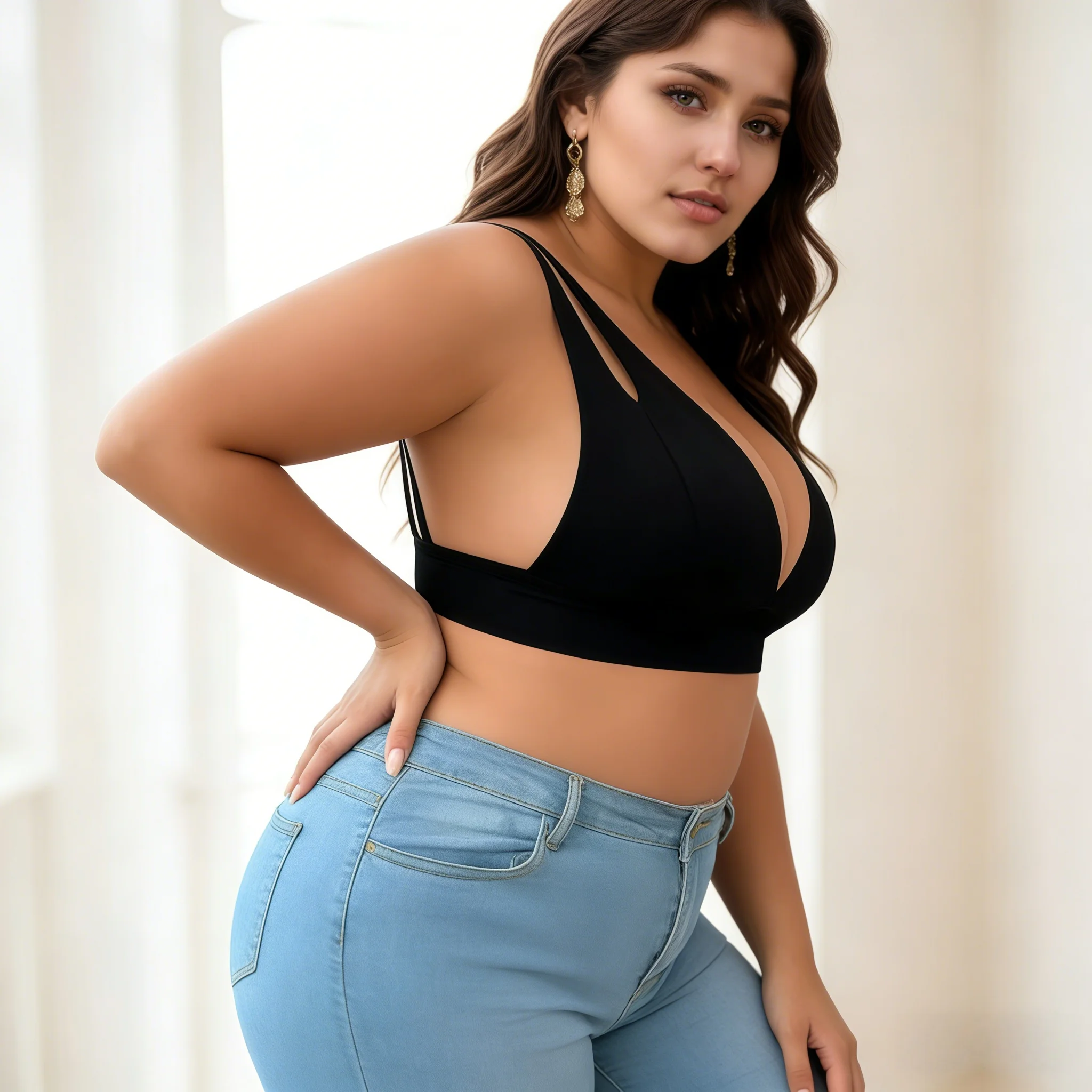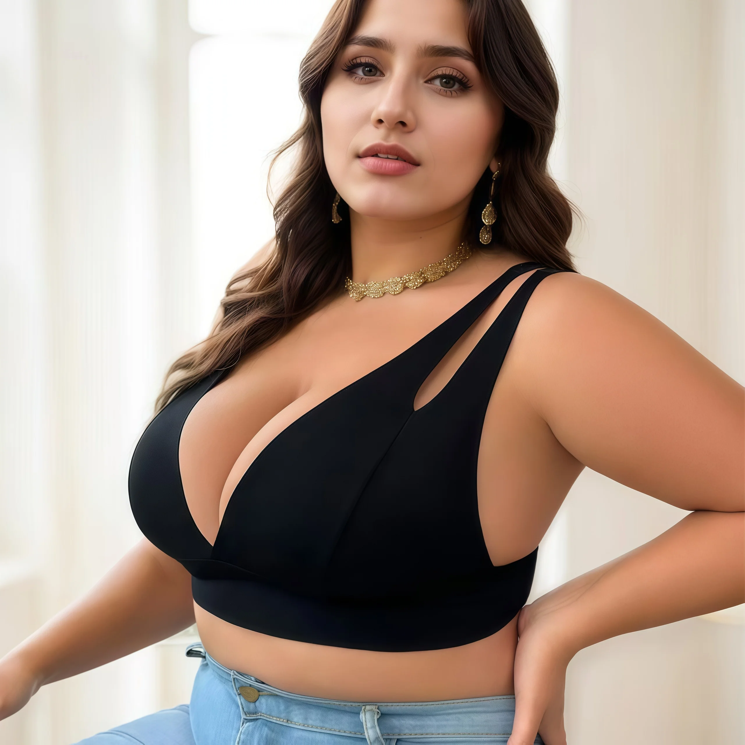 Customized Logo Seamless Plus Size Wireless Bra for Women Push up Bralettes Ladies V Neck Full Cup Padded Scalloped Bras