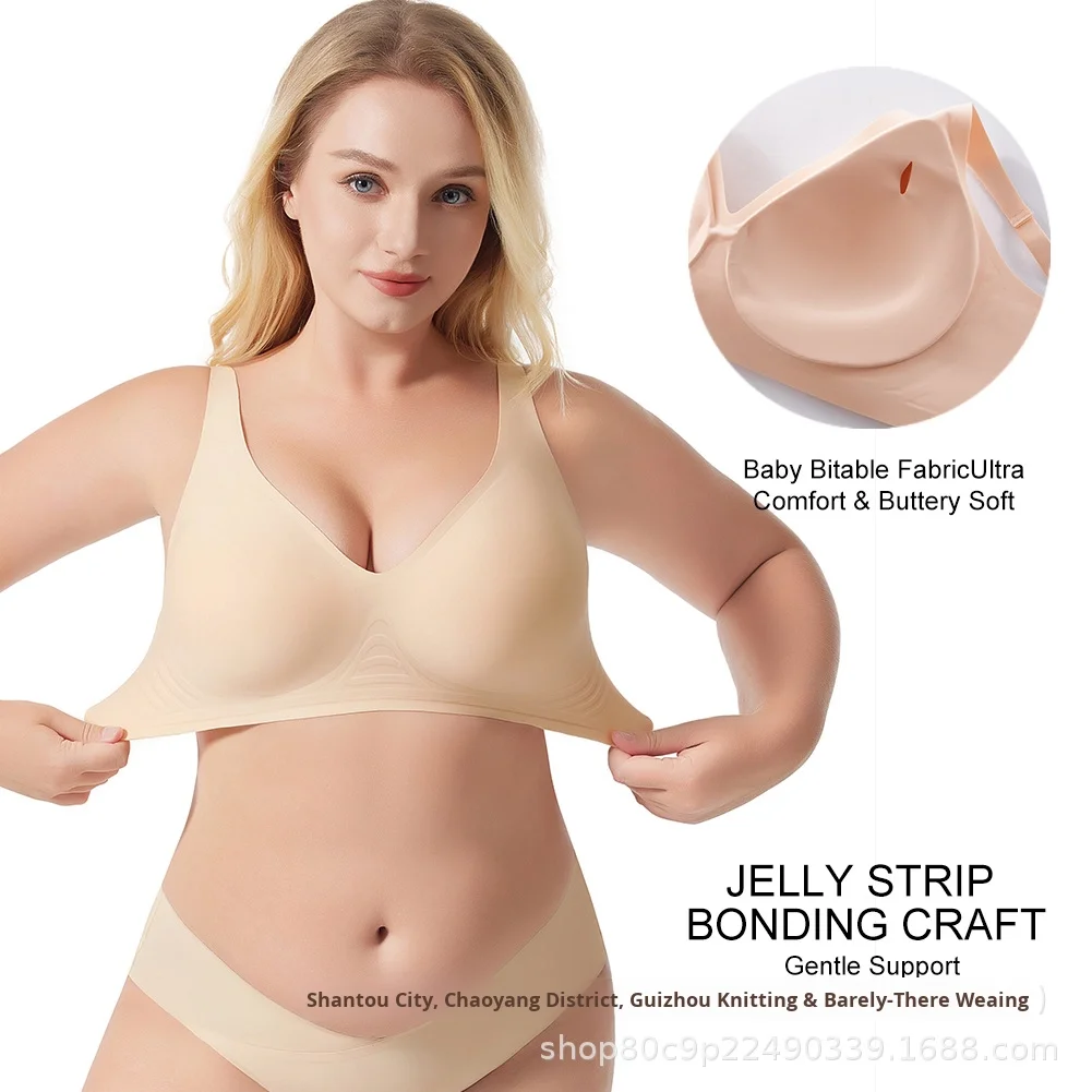 European American Women's Plus Size Comfortable Seamless Bras Large Size Thin Push-Up V-Neck Fixed Padded Breathable Bras