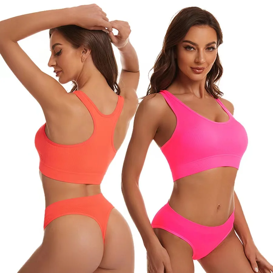 I-shaped Beautiful Back Sports Bra Sexy Thong Suit Solid Color Seamless High Elastic Gathered Fitness Yoga Underwear Women.