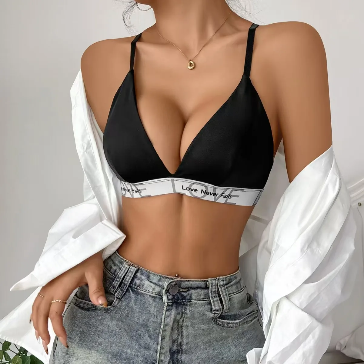 New Letters Women's Bra Adjustable Buckle Sexy Triangle Cup Bra Letters Beautify the Back Underwear.