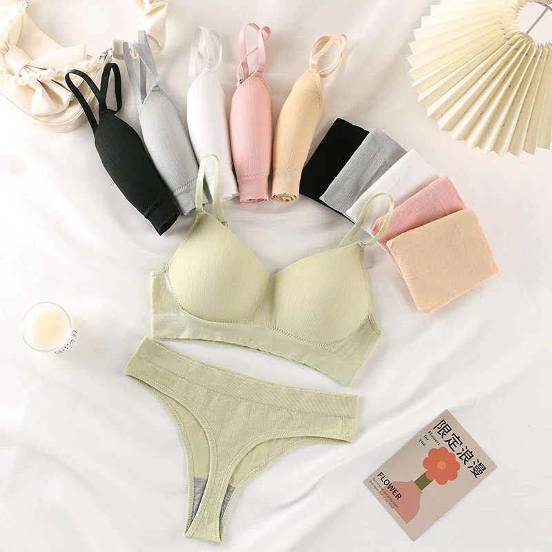 OEM High-quality New Design Seamless U-shaped Wire Free Bra Non-adjusted Straps Comfortable Women's Bra Set Three Quarters Cup
