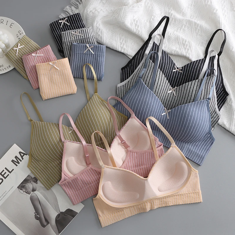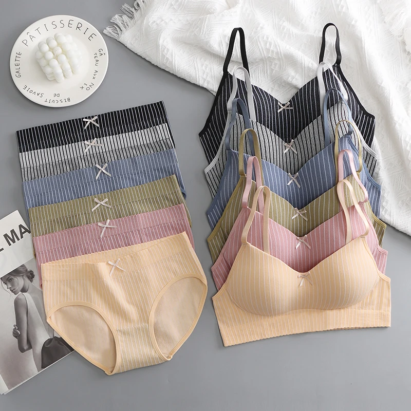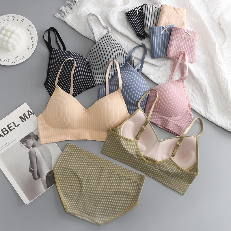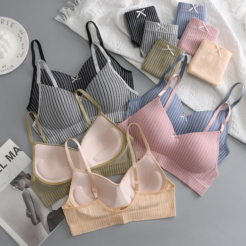 OEM Hot Sale of Women's Seamless Bra Made in China, Breathable Low U-shaped Back Bra, Color Contrast Stripe Underwear Set