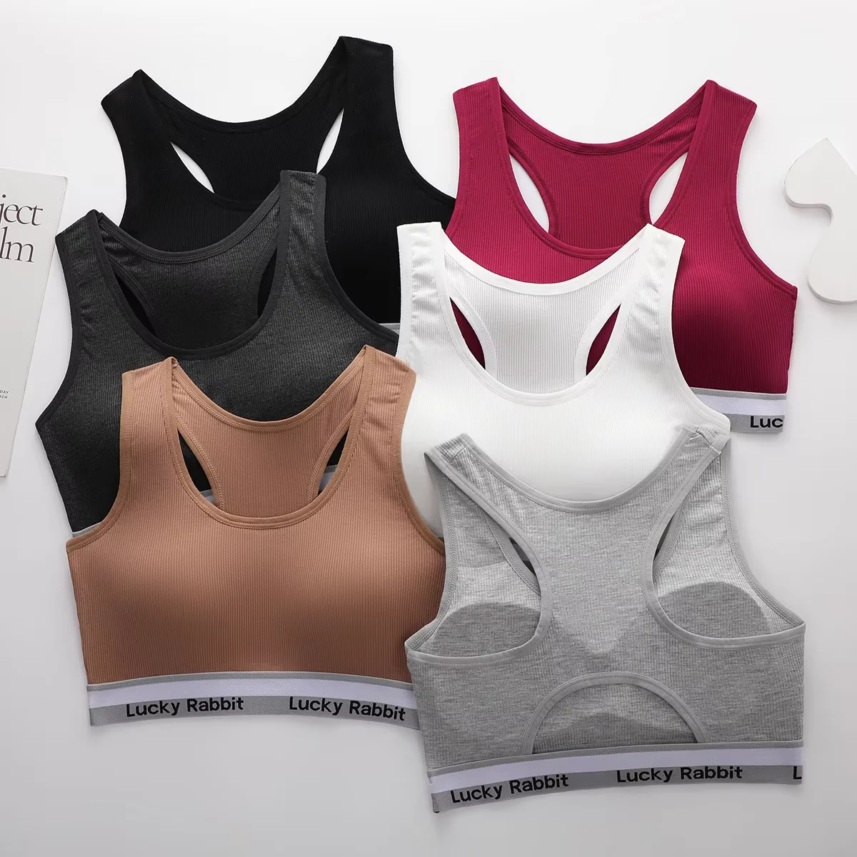 Factory Custom-Made Pure Cotton Women's Sports Bra Set Beautiful I-Shaped Back Steel Ring Seamless Logo Waist No Support Bras