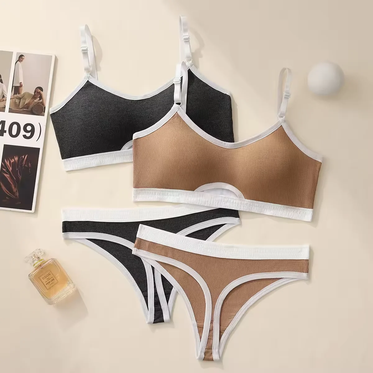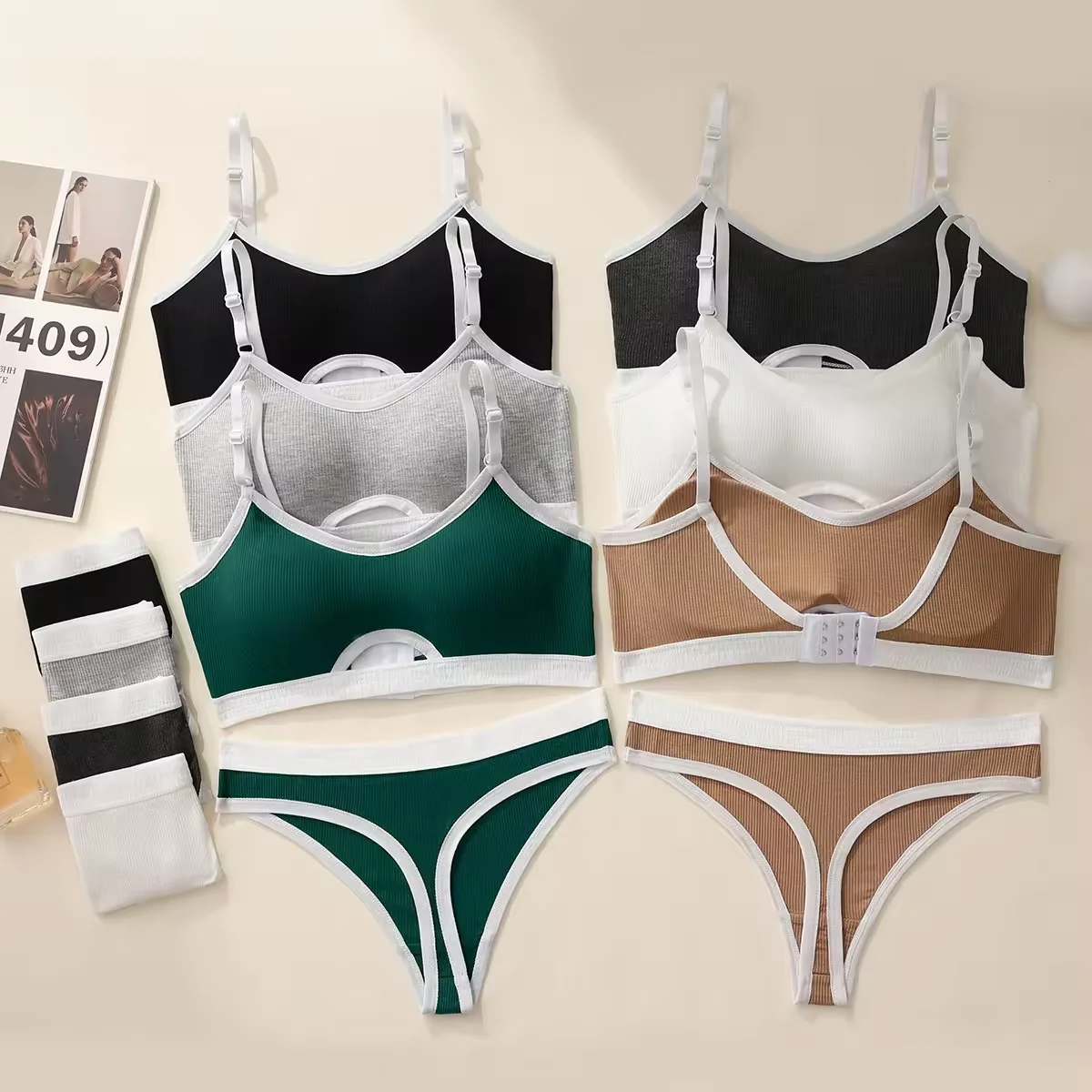 Factory wholesale cotton U-back anti-seismic sports bra set with adjustable back buckle and shoulder strap sexy thong.