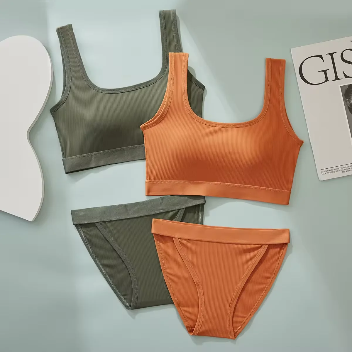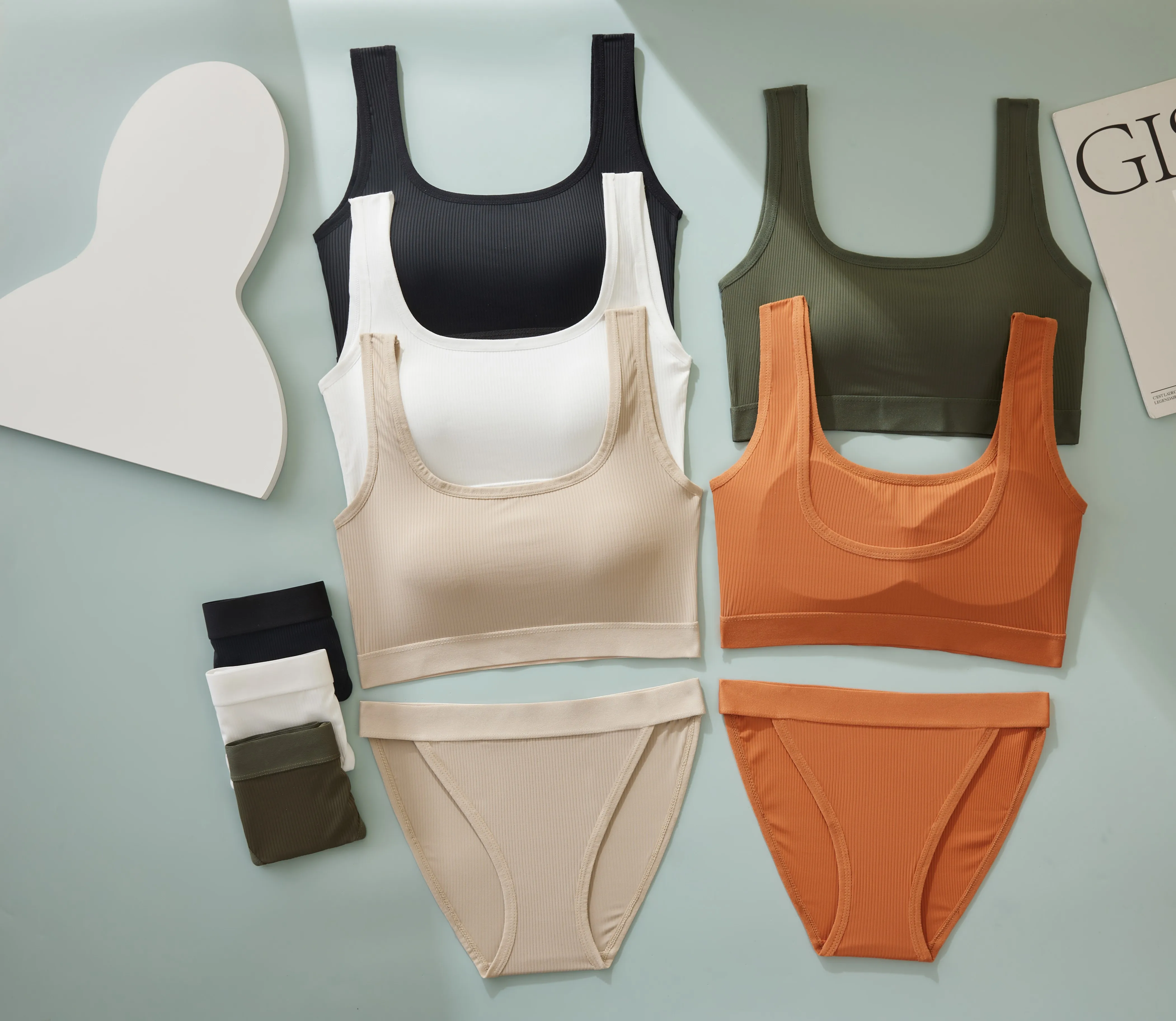 Factory wholesale 100% pure cotton high elastic comfortable sports bra set breathable anti-seismic gathered underwear set.