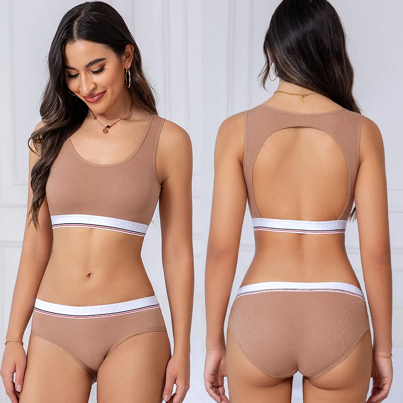 New OEM factory wholesale 100% cotton women's sports bra suit beautifies back comfort and shock-proof sports suit.