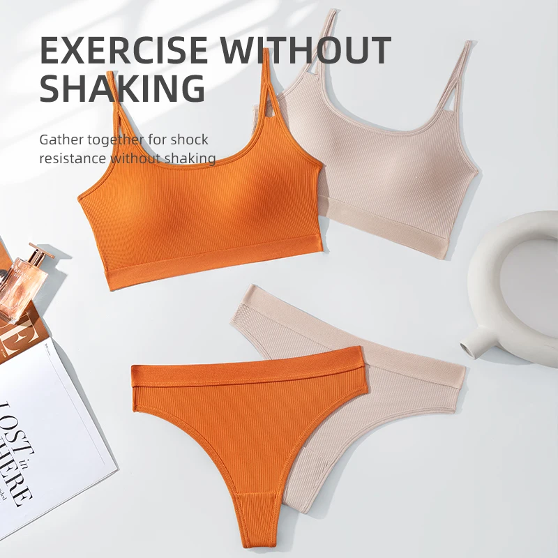 OEM Factory Outlet Women's Seamless Bra Set Adjustable Shoulder Strap Thong Disassembly Cup Breathable Everyday Style Logo Waist