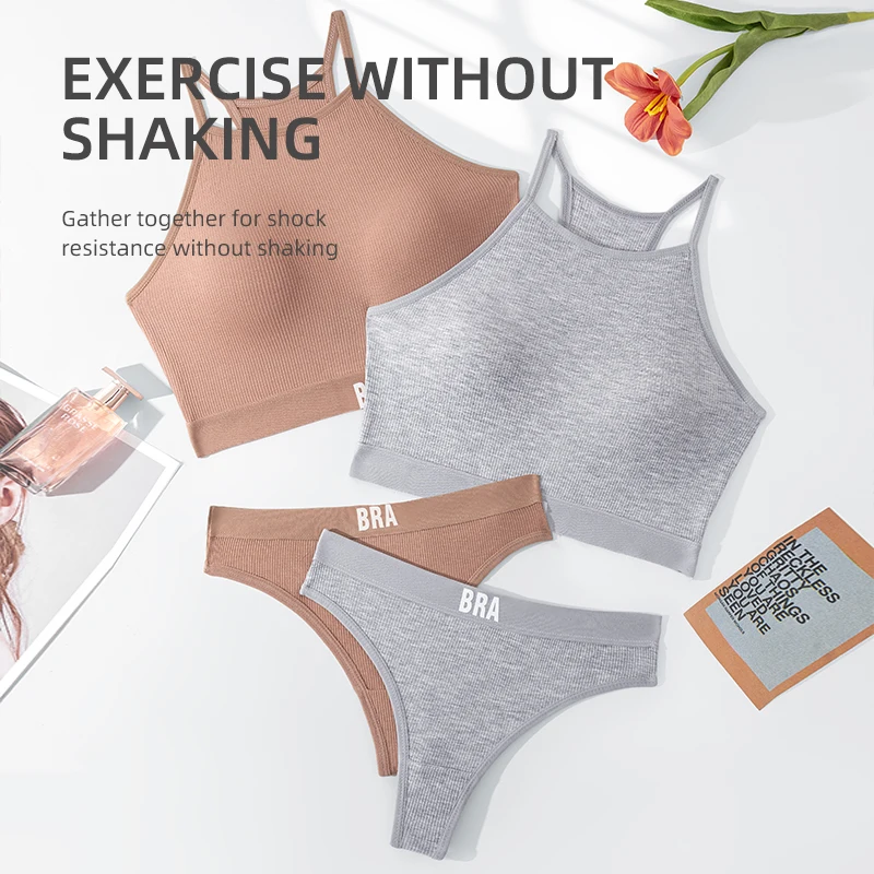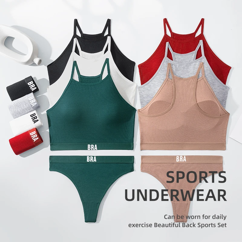 OEM Factory Outlet Women's Bra Set Cross Strap Thong Bra Set Hollow Beautification Back Breathable comfort Shock-proof Bra.