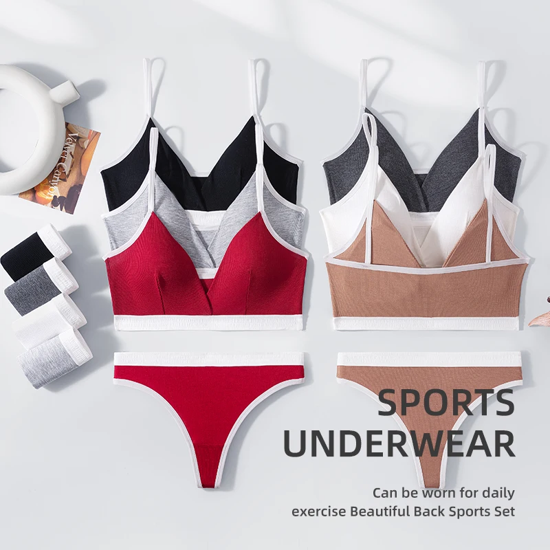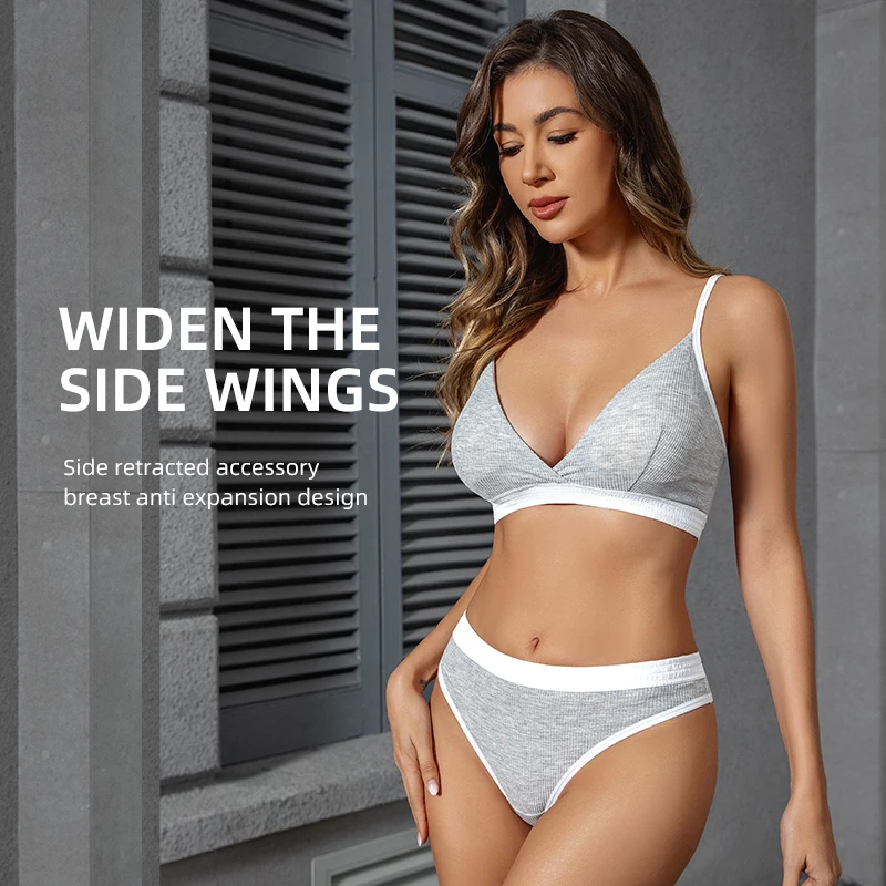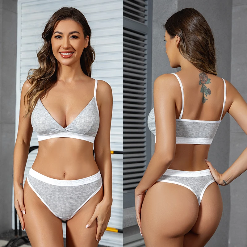 OEM women's sexy bra set thong sewing comfortable breathable hollow back underwear to enhance aesthetic feeling.