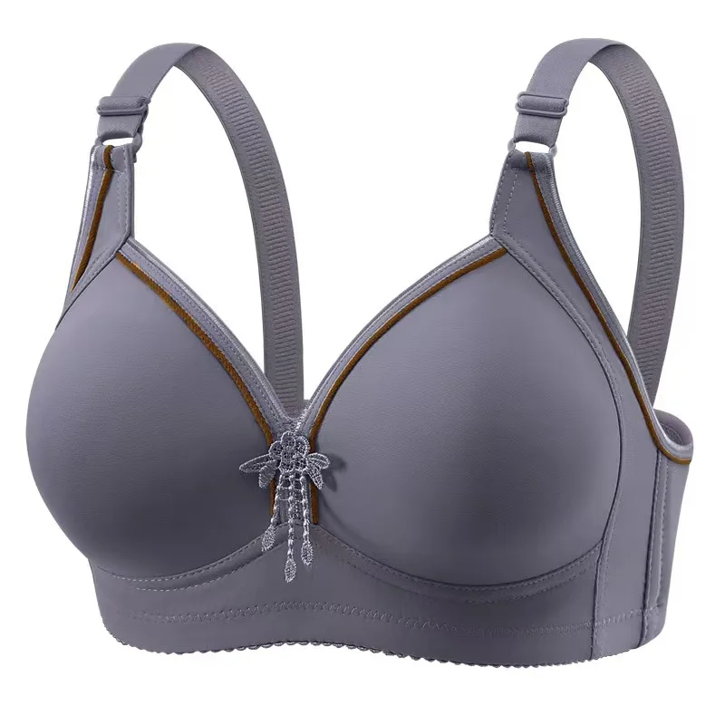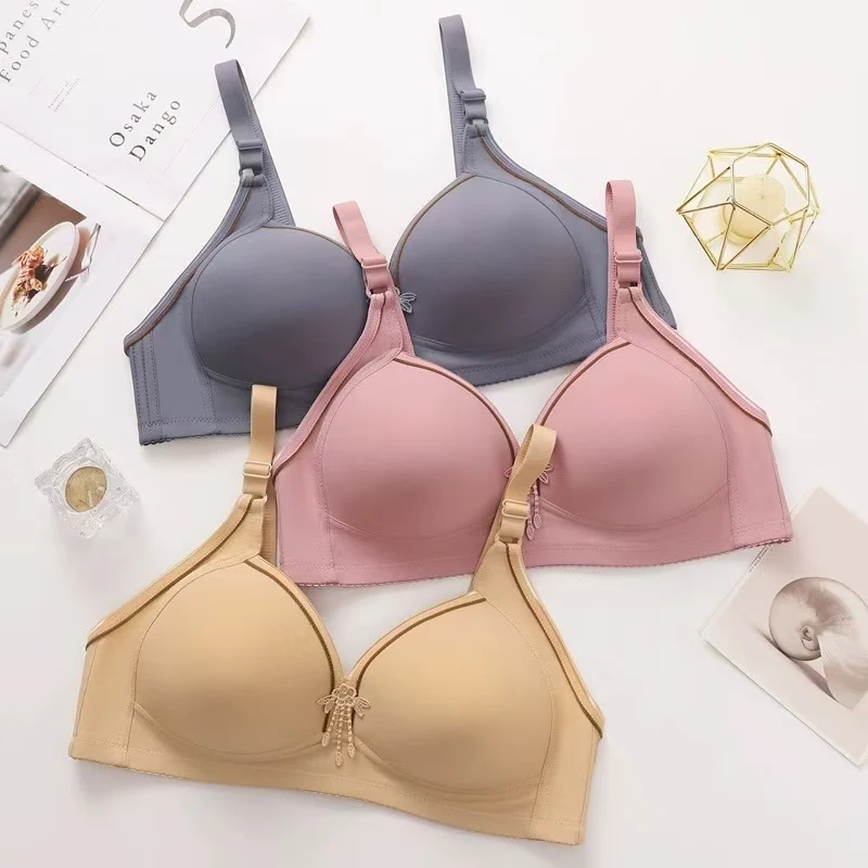 Plus Size Women's Bra, Thin Gathered Seamless Factory Wholesale Underwear Adjustable Back Button Fashion Bra.