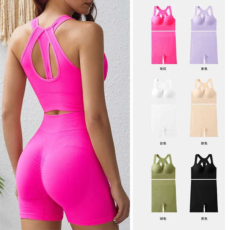 OEM /ODM Sports Bra Women's Seamless Yoga Suit With High Elasticity Beautifies Back comfort and Detachable Chest Pad Sport