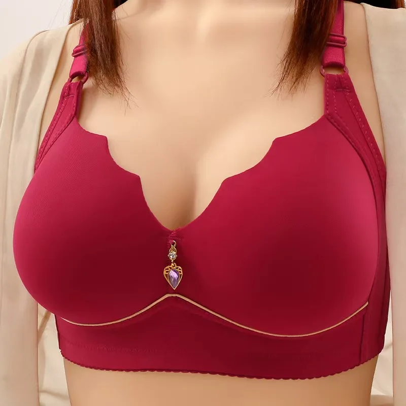 Factory wholesale plus size women's bra, thin gathered seamless underwear, adjustable back button fashion bra.