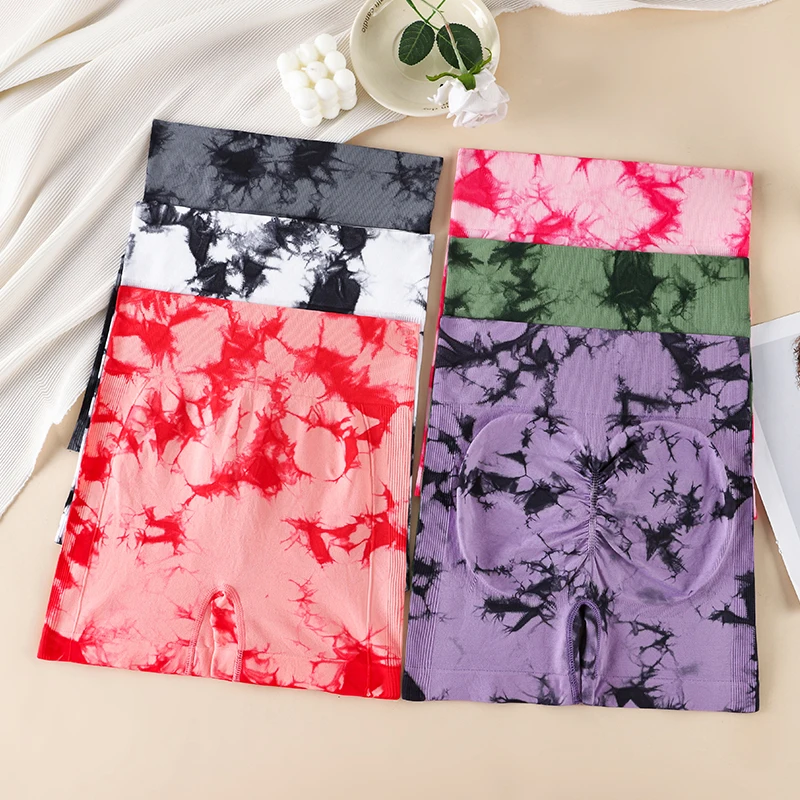 OEM New Running Shorts Gradient Women's Yoga Shorts Pants Seamless Color High Elastic Hip Fashion Tie-dyed Shorts Sportswear.