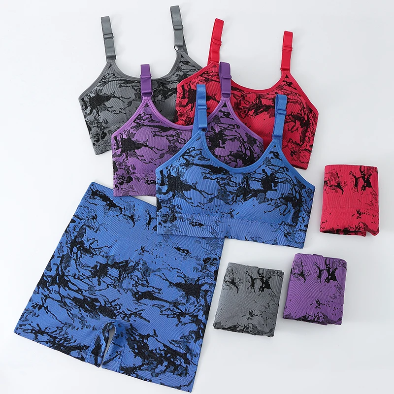 Yoga 2 Piece Yoga Set Ladies Active Wear Sports Bra and Exercise Shorts Fitness Set Breathable and Lightweight Elastic Quick Dry