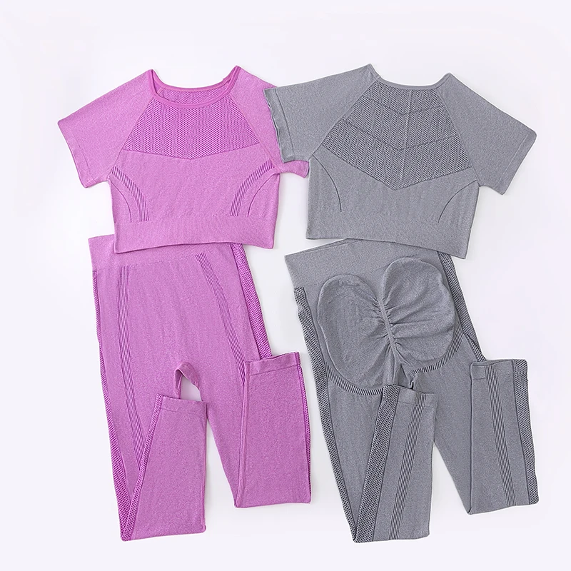 OEM/ODM Yoga Suit Quick-drying Tight Sports Pants Short-sleeved Suit Online Celebrity Peach Running Yoga Underwear Women's Suit