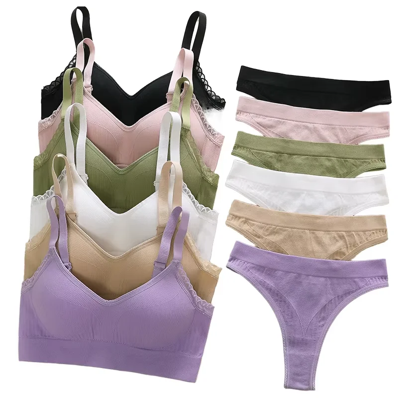 New Cotton Seamless Adjustable Sling Charming Thong Cotton Underwear Seamless Comfortable Bra Set
