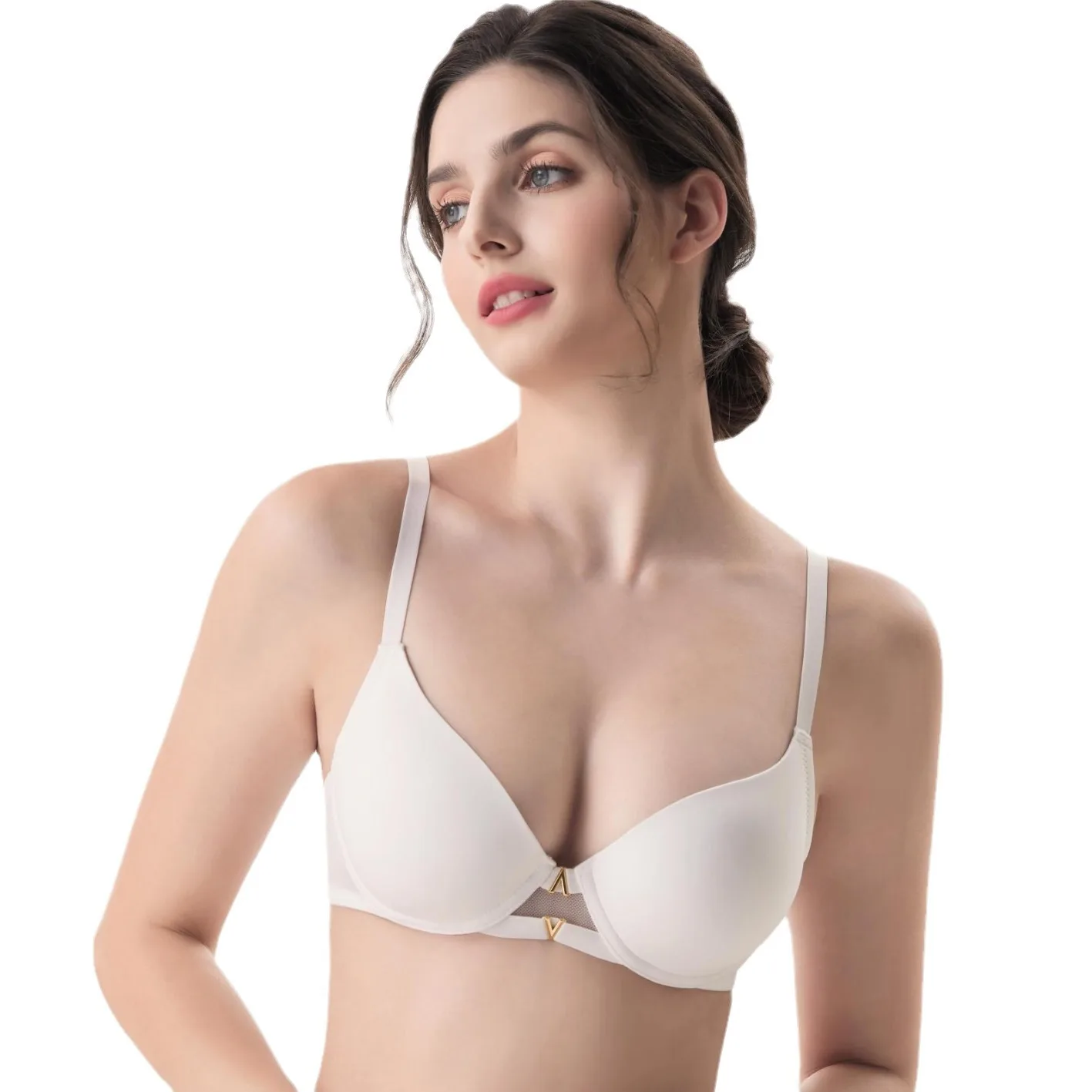 New Product Custom Full Cup Lady V Neck Support and Lift Push up Seamless Sport Padded Smoothing T Shirt Bra No Underwire