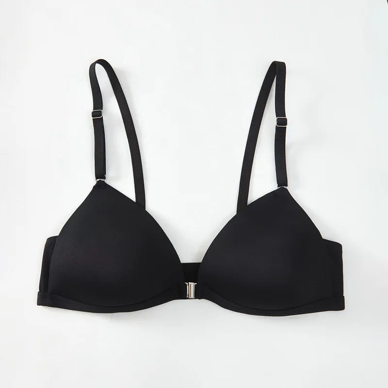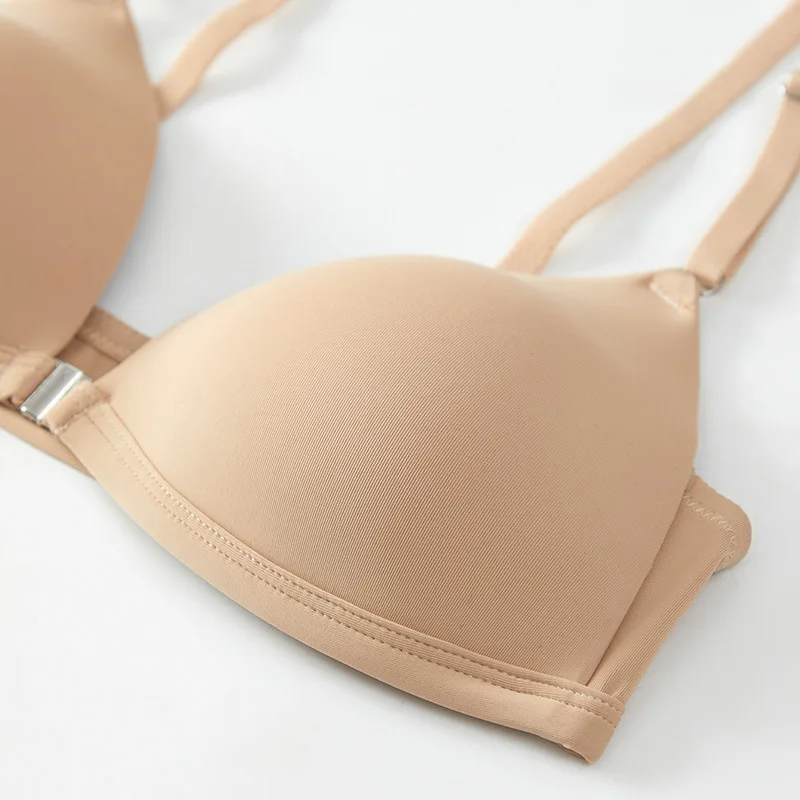 Solid Color Smooth Front Buckle Bra Sexy Deep V No Rims Side Gathered on the Fixed Cup European and American Ladies Underwear.