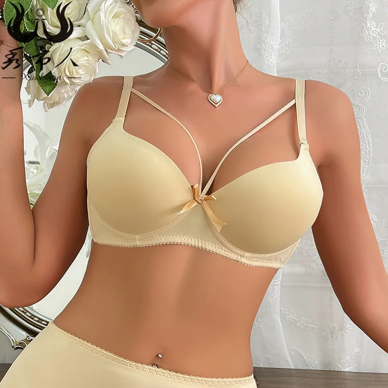 Europe and the United States Gathered Sexy Top-up Bra Simple Smooth Top-up Chest Strap Underwear Comfortable Adjustable Bra