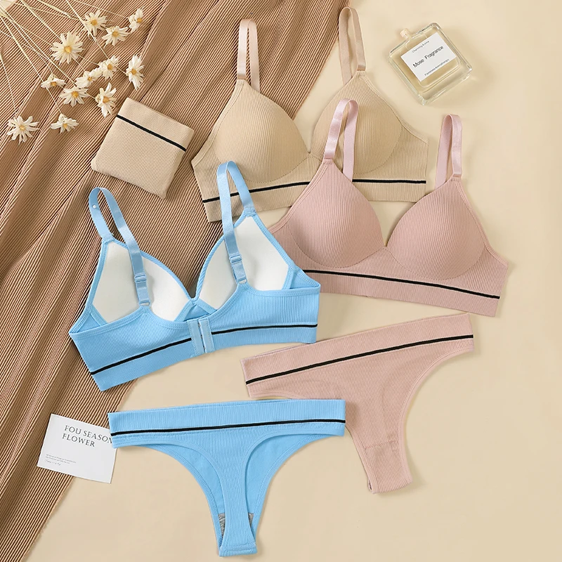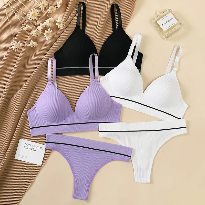 OEM Foreign Trade Bra Set High Elastic Striped Decorative Bra Thong Set High Quality Gathered Ladies Underwear.