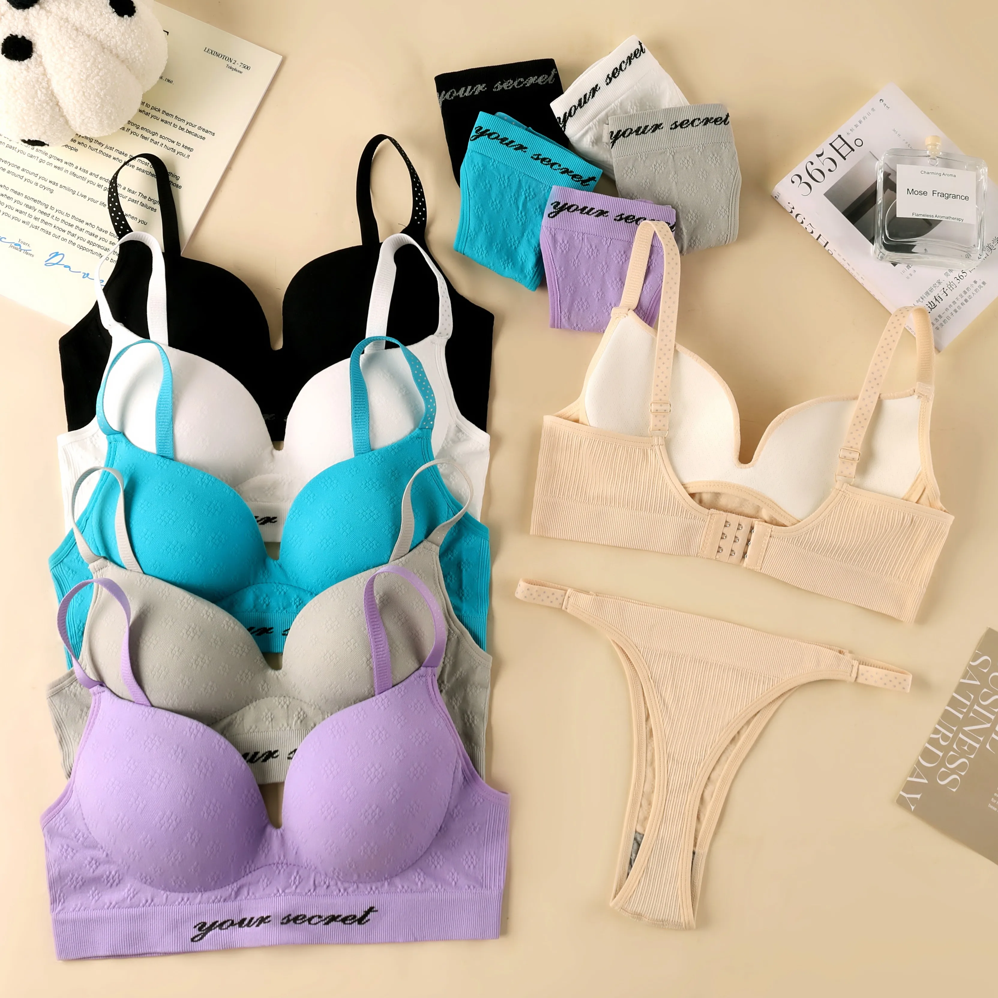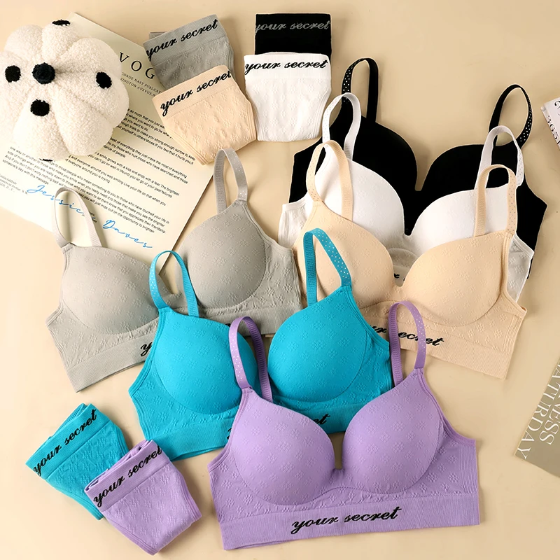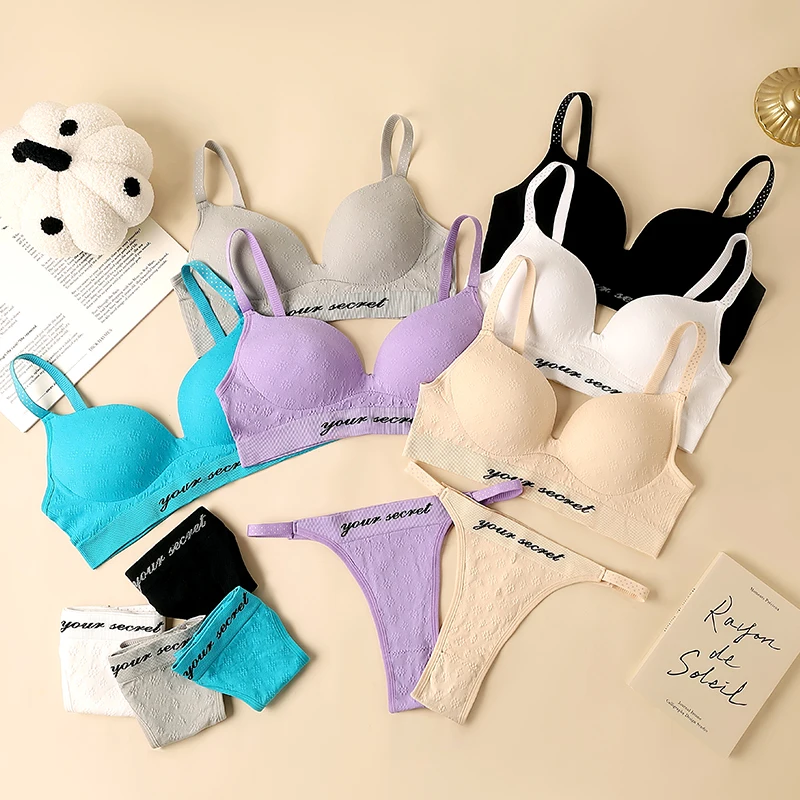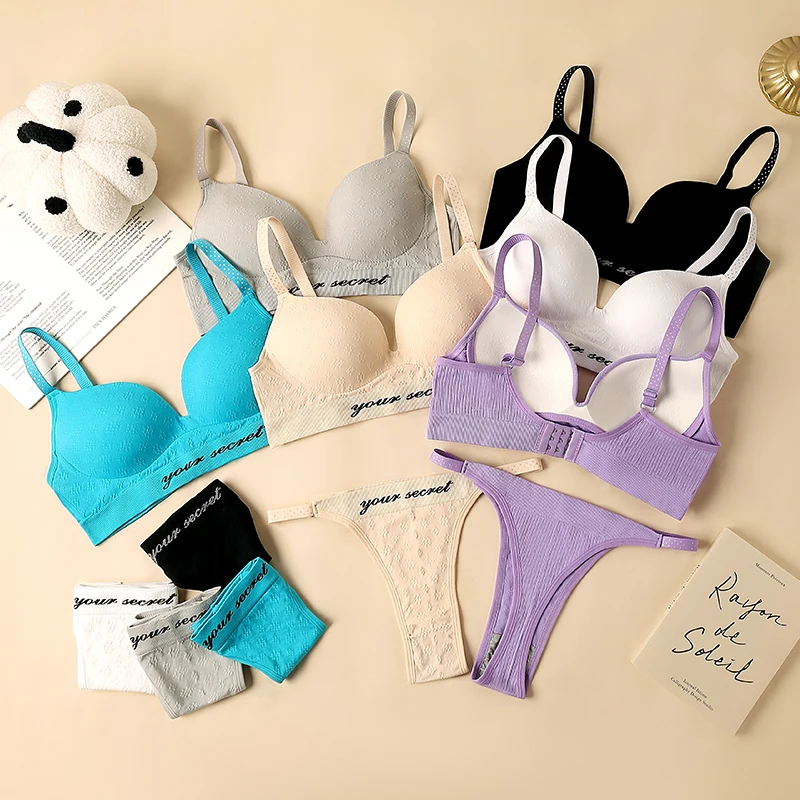 New High-quality Ladies Thong Bra Set Adjustable Back Button Sexy Seamless Letter T-back Bra Set Sexy Bra