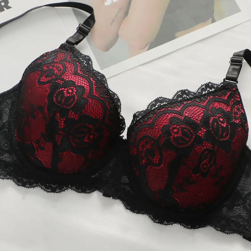 Europe and the United States Gathered Lingerie Lace Sexy Lace on the Top of the Anti-sagging Breast Bra Set