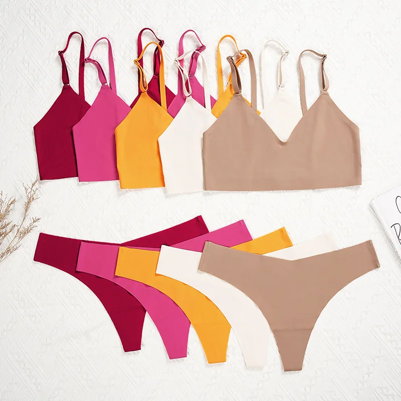 Europe and the United States Ladies Underwear Set Sexy Seamless Breathable comfort Gathered on Tuomei Back Bra Underwear.