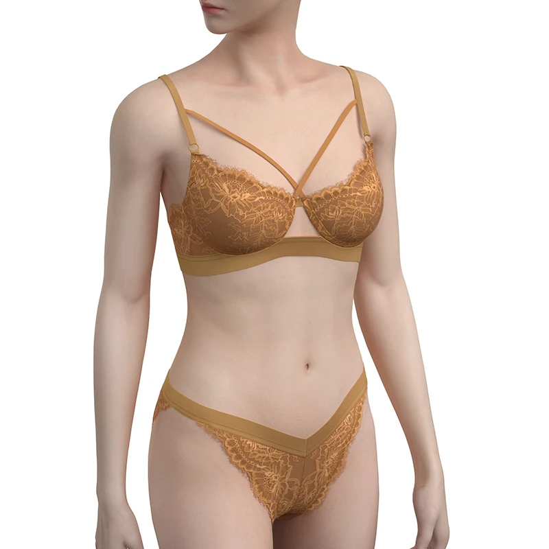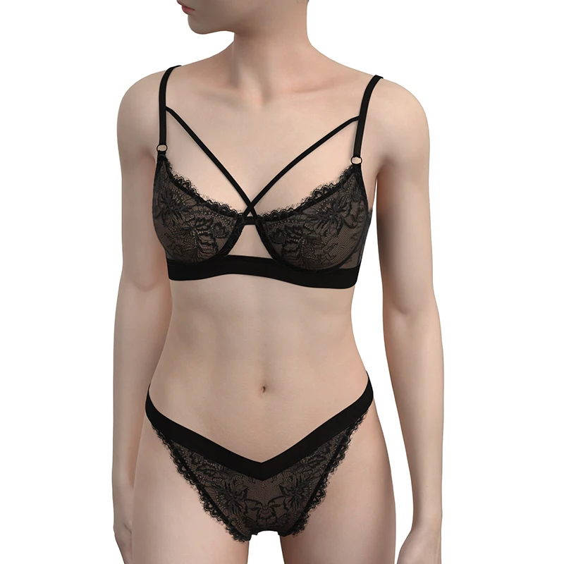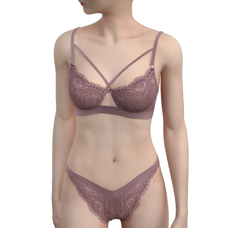 Women's Sensuel Push-Up Bra and Panty Set with Fine Complet G-String Sexy Lingerie Embroidered Lace Decoration Logo on Waist