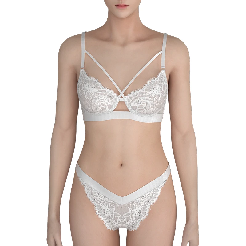 Women's Daily Use Sexy Embroidery Bra Hipster Panty Set See Through Lingerie with Lace Decoration Ladies' Underwear Logo Waist