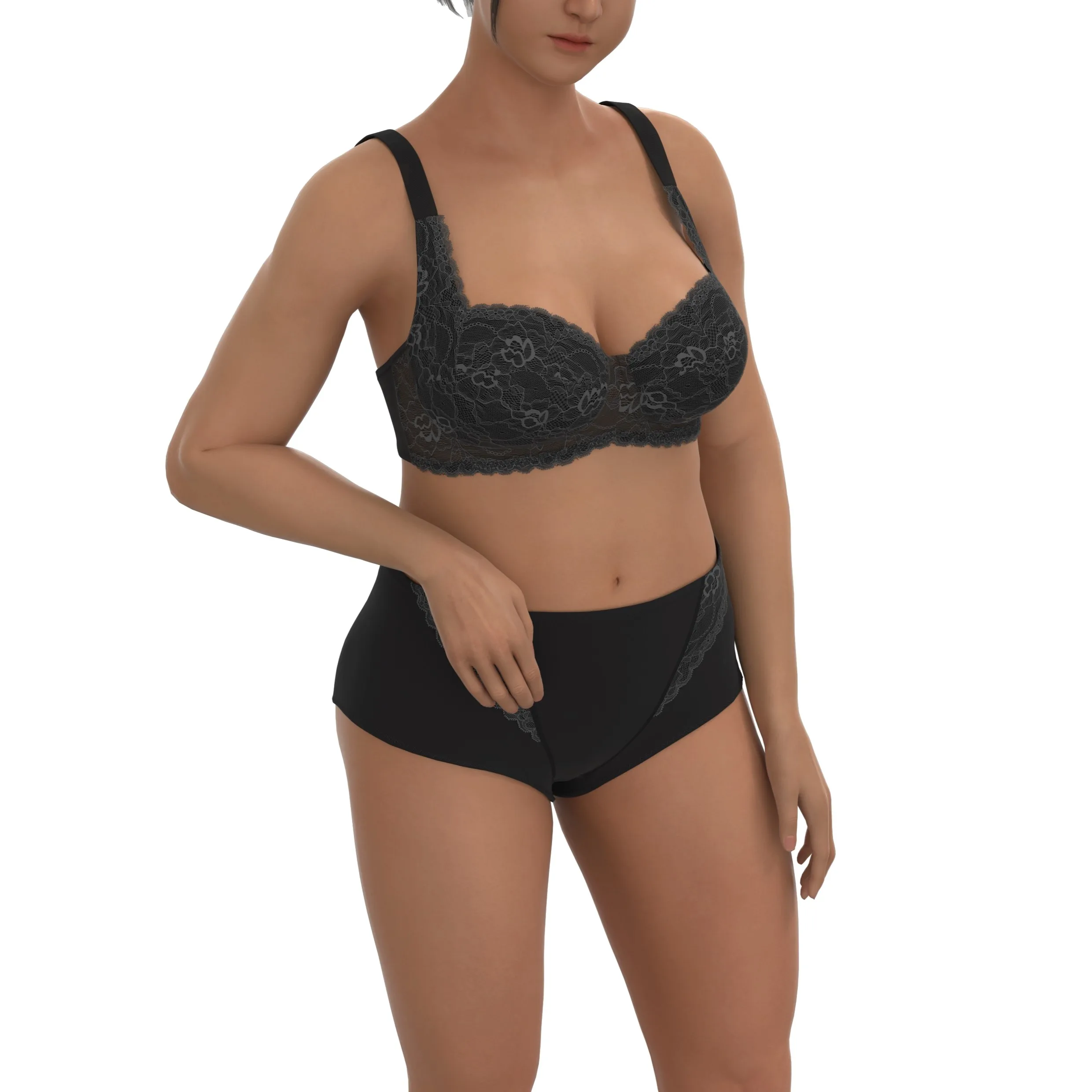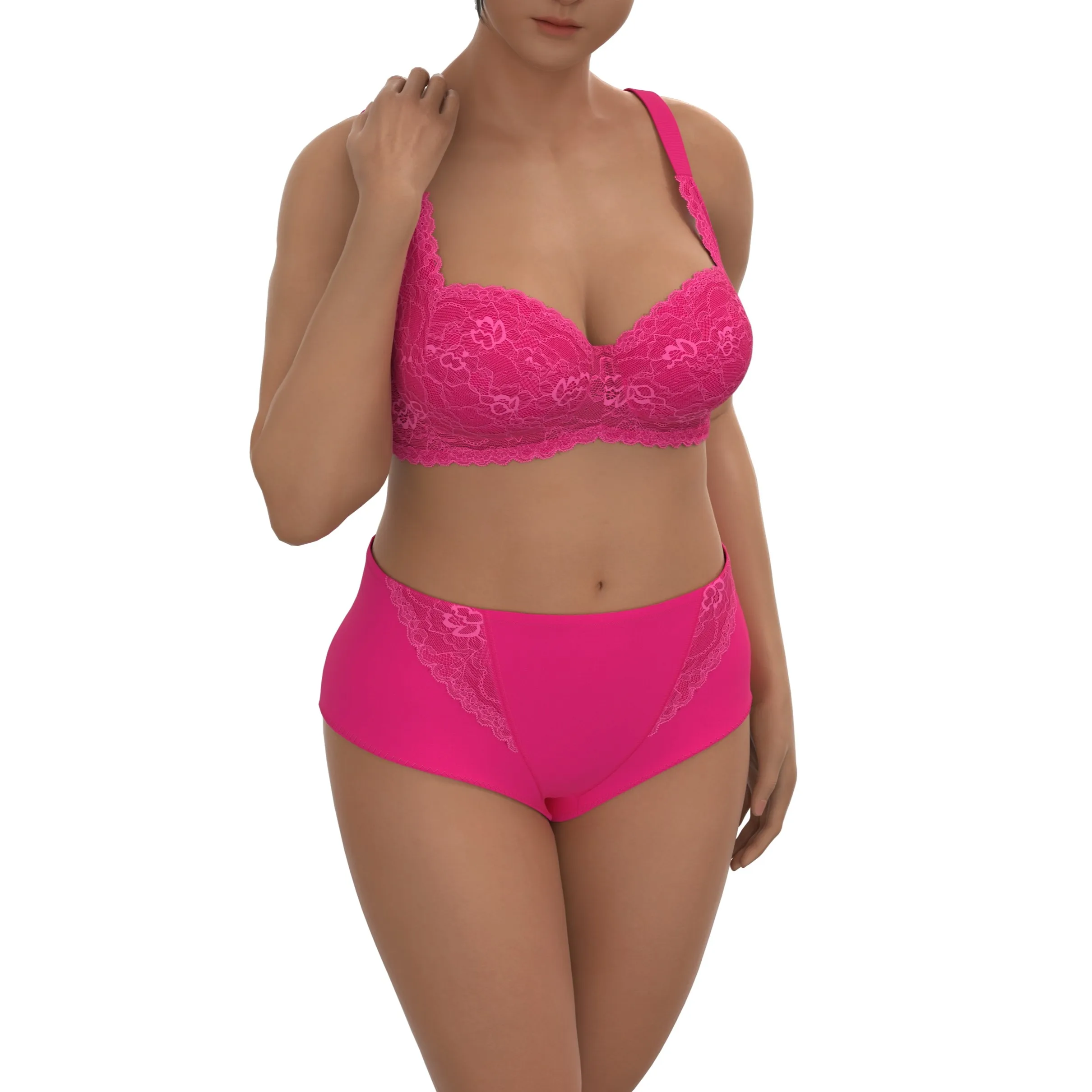 Custom Logo Plus Size Ladies Bra Panty Set Triangle Cup Shape Everyday Style Embroidery Lace Seamless Cotton Underwear Panties